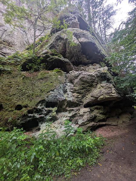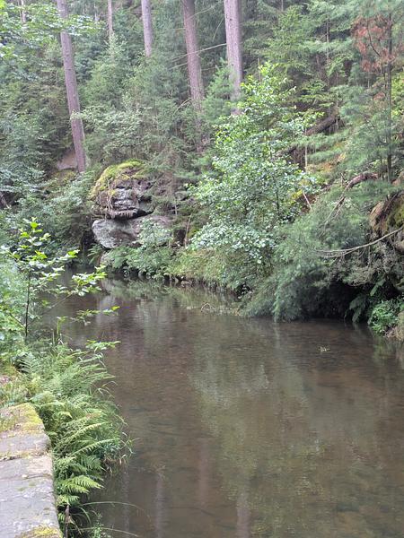 Der erste Teil des heutigen Weg ging noch einmal durch ein enges Bachtal entlang jeder Mege Sandsteinfelsen.