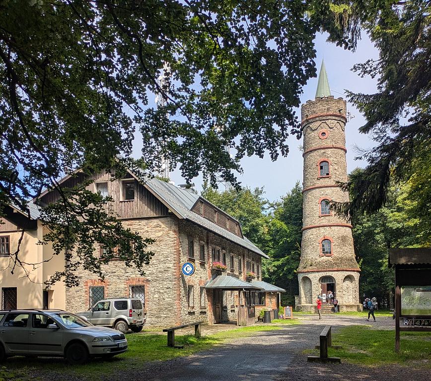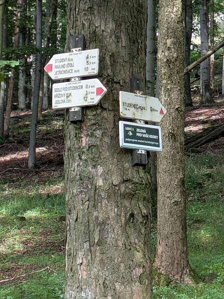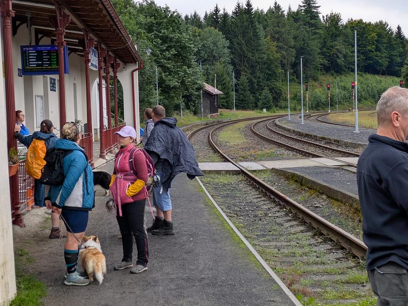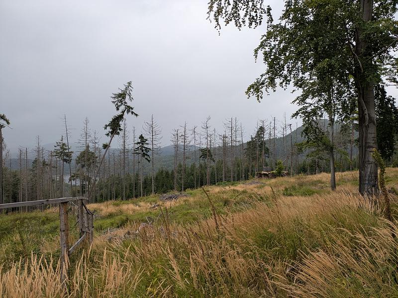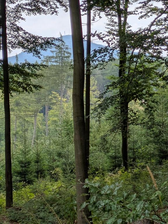 Beim Aufwachen regnete es dermaßen dass ich drauf und dran war, für die ersten 20 Kilometer und 550 Höhenmeter die Notfall-Option bestehend aus Bus und Bahn zu nehmen (da der Bahnhof Jedlová sowieso Teil des Weges war). Andererseits wollte ich natürlich nicht schon am zweiten Tag anfangen zu schummeln. Nach dem Frühstück war es auch kurz mal sonnig, so dass ich tapfer auf den Weg gemacht habe 💪