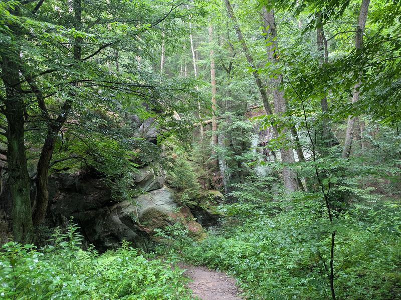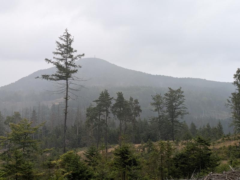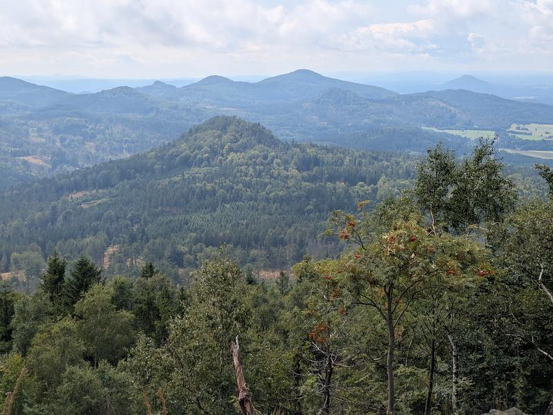 Danach wechselt der Weg ins Lausitzer Gebirge. Lt. Wikipedia dominieren hier ehemalige Vulkane das Landschaftsbild, die letzten Ausbrüche liegen aber schon ein paar Jahre zurück. Bizarre Felsformationen fehlen, dafür die die Aufstiege zwar lang, aber wenigstens nicht so steil.