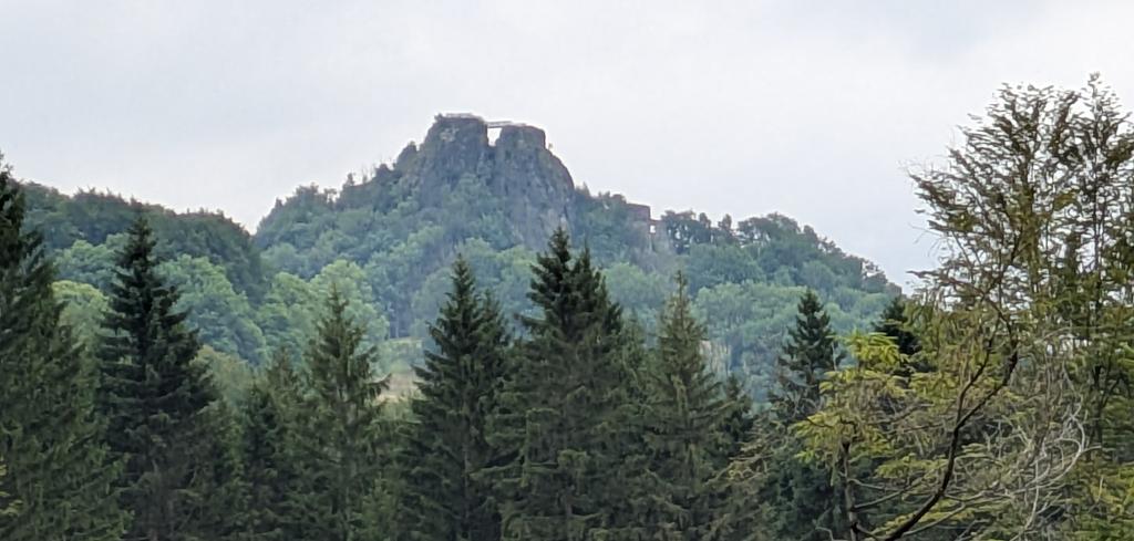 Die nachste Felsenburg schob sich in den Blick. Da ich zu dem Zeitpunkt aber schon 650 Höhenmeter hinter mir und noch 200 Höhenmeter vor mir habe, wollte ich ganz und gar nicht dort hoch. Vielleicht mache ich morgen einen Abstecher.