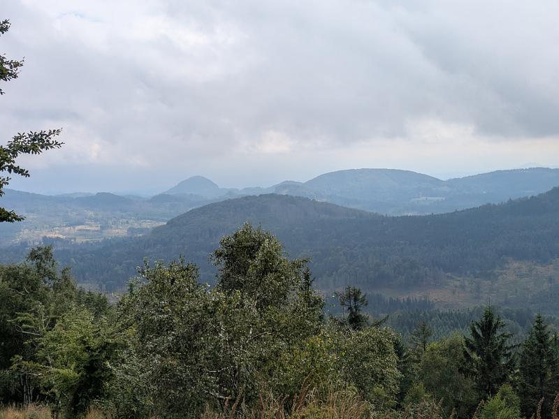 Kurz vor dem Gipfel (jaja, das mit der Hälfte war natürlich nur ein frommer Wunsch) wurde es unerwartet sonnig und es gab einen Blick auf die umliegenden Berge.