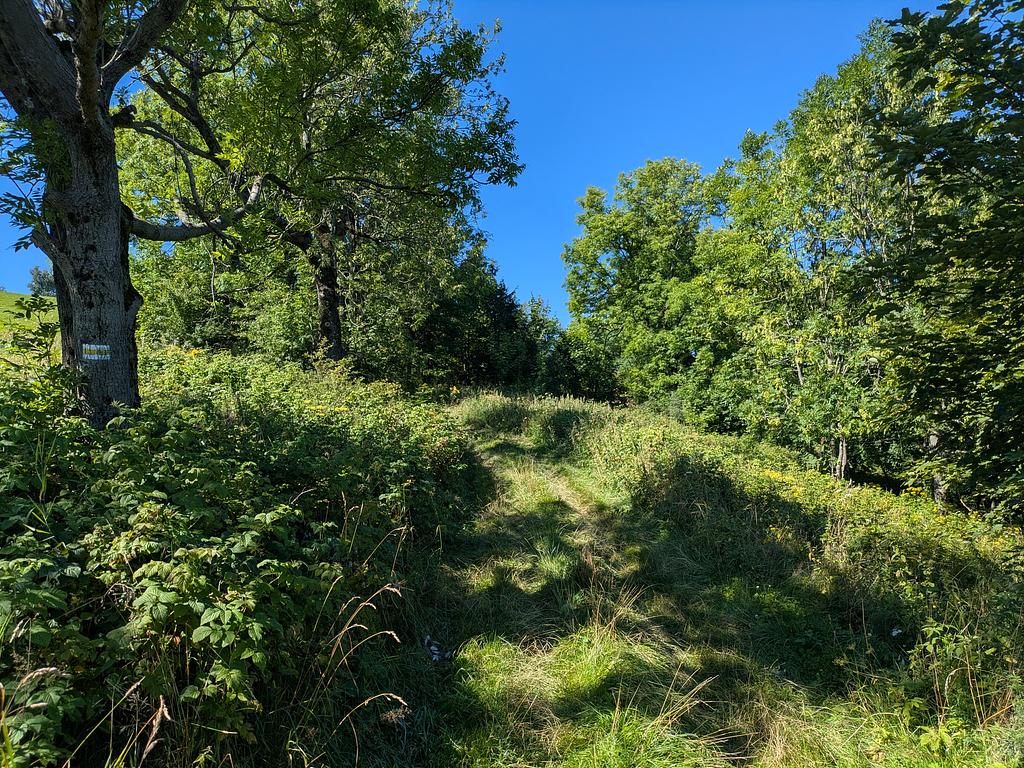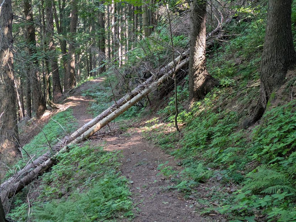 Das war heute eine relativ entspannte Etappe. 250 Meter nach oben, 950 nach unten. Und das wichtigste dabei: An den schrägen Stellen immer Waldboden. Das freut Knie und die Durchschnittsgeschwindigkeit.