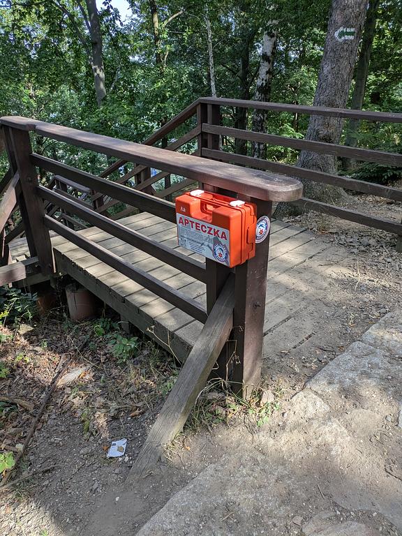 Und falls man das Heilwasser nicht hängt weiter oben eine Erste-Hilfe-Box, was ich so noch nie gesehen habe und sehr rücksichtsvoll finde (ich habe allerdings mein eigenes Set dabei, welches auch noch "originalverpackt" ist).