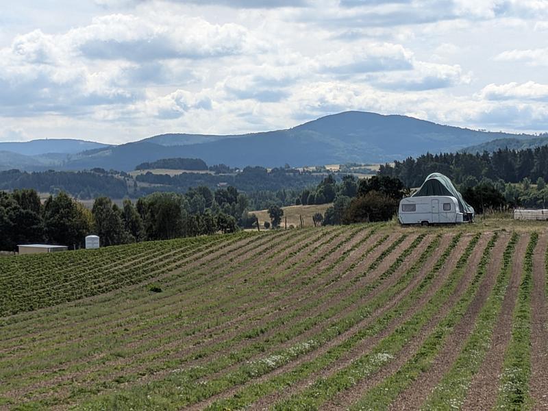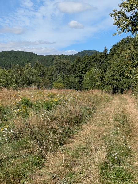 Dann ging es weiter, heute etwas abseits des offiziellen Weges. Nach reiner Lehre wären es heute und morgen zusammen 61 Kilometer und 2400 Höhenmeter gewesen. Das hatte ich bei meiner Planung irgendwie nicht so gefühlt und daher kleinere Etappen geplant. Daher musste ich etwas flexibel bei den Übernachtungen sein, die num abseits liegen. Aber es ist ja auch schön, von weitem auf das Gebirge zu schauen.