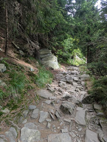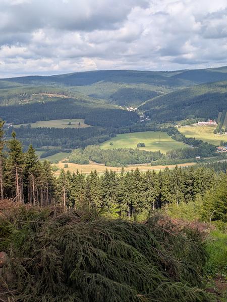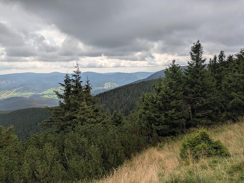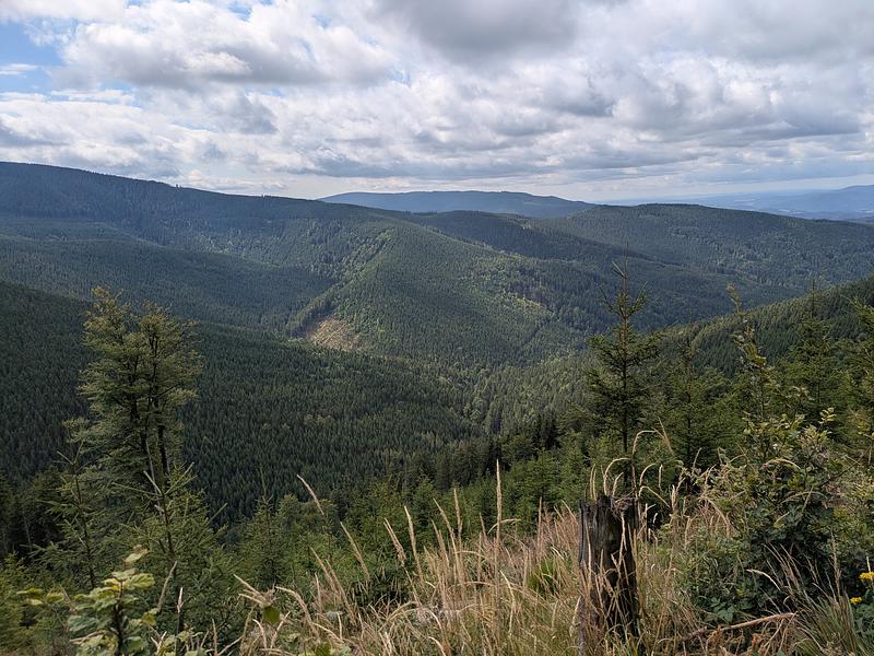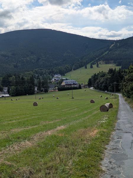Und schon kam die dritte Entscheidung. Lt. Wanderführer sollte man weiter zum Červenohorské Sedlo (ich weiß, dass Ihr alle schon heimlich den Duolingo-Kurs "Tschechisch" macht und das demzufolge selbst übersetzen könnt). Dirt gibt es auch ein Hotel, dass strategisch ausgezeichnet gelegen hätte, in der Nebensaison aber einen Mindestaufenthalt von vier Nächten (sic!) hat. Da ich mir die nächsten drei Tage nicht jeden Grashalm einzeln angucken wollte, hatte ich mir ein Hotel im Talort gebucht. Und nun die große Frage - Bus oder laufen?