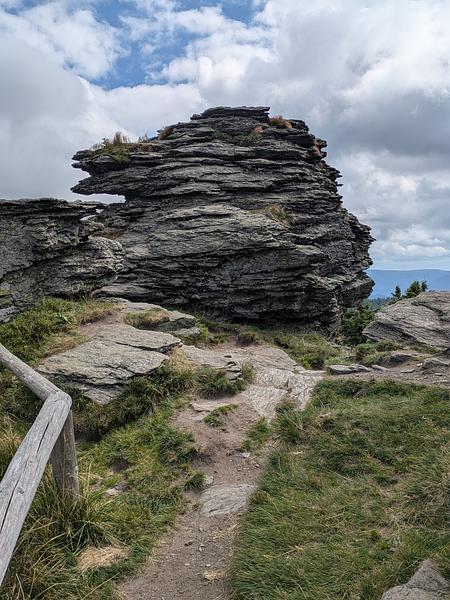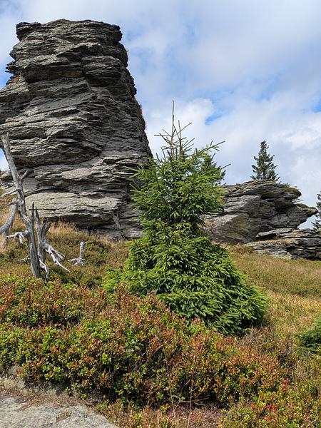 Einen Kilometer weiter gab es die nächste Entscheidung. Entweder geradeaus weiter auf dem Wander-Highway oder abbiegen und 1,5 Kilometer Umweg zu einem weiteren Felsen (Vozka) machen. Und wie wir aus dem Arbeitsleben wissen muss man eben manchmal die Extra-Meile gehen. Im Gegensatz zum "echten" Leben gab auf der heutigen Mehrleistung aber direkt die Belohnung - der Felsen war nämlich wirklich bilderbuchartig.
