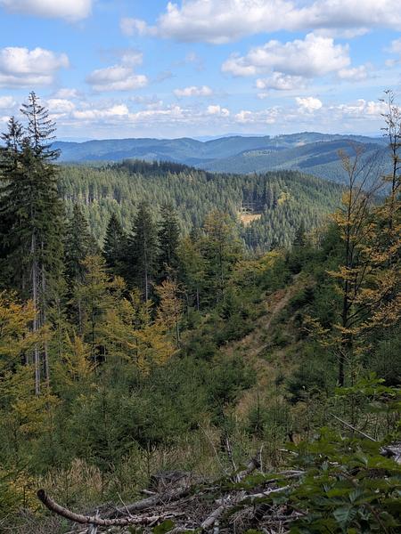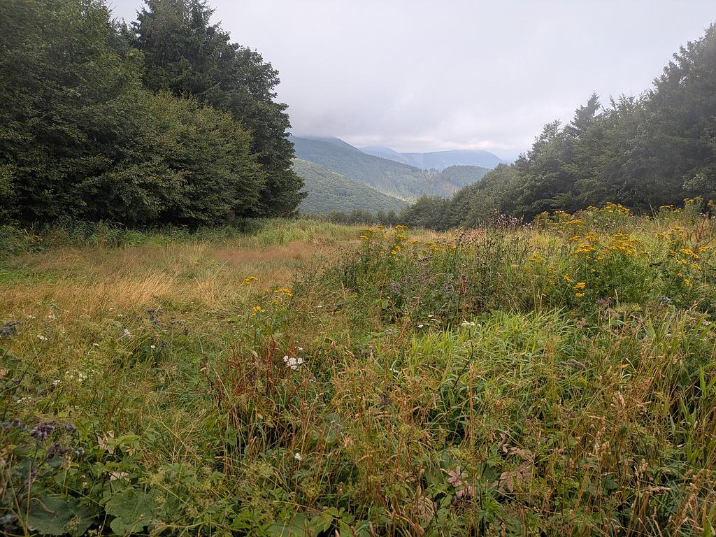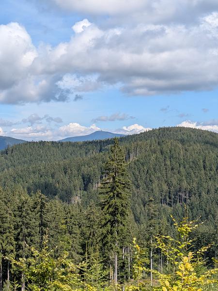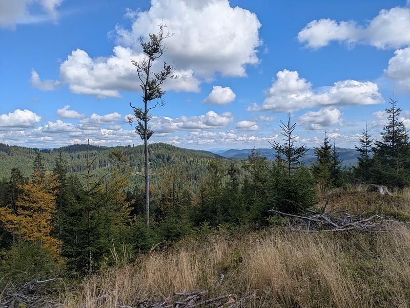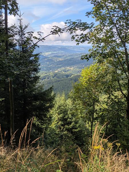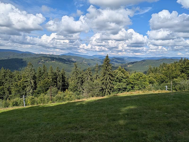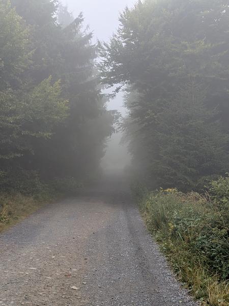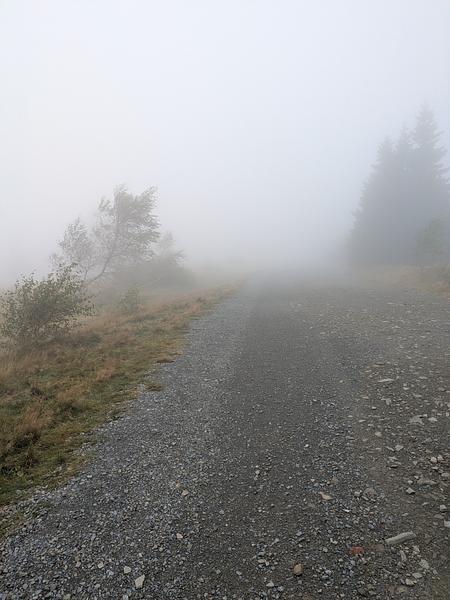 Der frühe Vogel fängt weder den Wurm noch den Sonnenaufgang. Es war am Anfang einfach neblig. Und merkwürdigerweise war auch schon kurz vor 9 recht viel Betrieb auf dem Kammweg, die Ruhe kam erst später. Aber positiv: Keins meiner "Ahoj" wurde mit "Guten Tag" beantwortet.