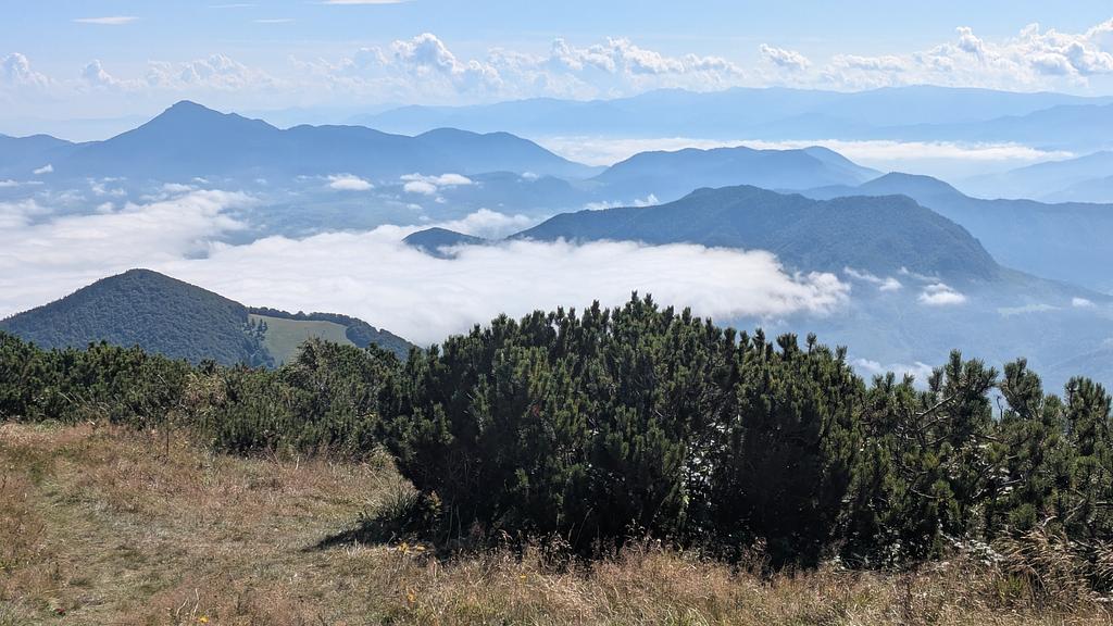 Ja, und dann startete der Aufstieg zum Stoh. 400 Meter, was soll schon schief gehen? Nun ja, einerseits keine Miniserpentinen, andererseits eine "Krummholzzone" (Zitat aus dem Wanderführer), die sehr, sehr unangenehm war.