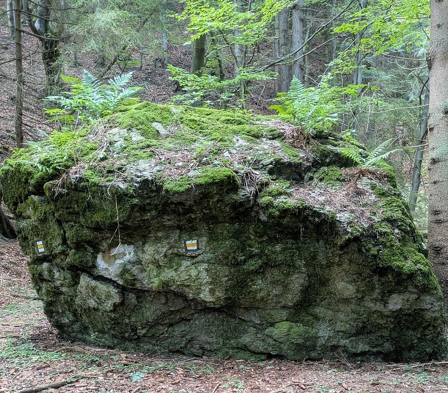 Und ja, ich hätte diesen Berg auch noch mitnehmen können. Lt Wanderführer wäre das einfach, man bräuchte "nur" Kondition und Trittsicherheit. Beides hatte ich schon am Aufstieg zum Stoh verbraucht und daher einen eher tangentialen Weg gewählt. Von dort an ging es dann ziemlich entspannt durch Buchenwald dem Ziel entgegen.