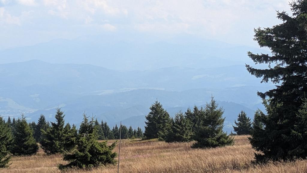 Fast Forward zu heute morgen. Gut aus dem Bett gekommen, lecker gefrühstückt, Sonnencreme drauf und los geht's. Der heutige Abschnitt war, verglichen mit den letzten, relativ einfach, versprach recht wenig Ablenkung und sollte sich durchwandern lassen. Das passt auch, und so reihte sich Bergwiese an Bergwiese (aber eine hübscher als die andere) und (Ur-)Wald an (Ur-)Wald.