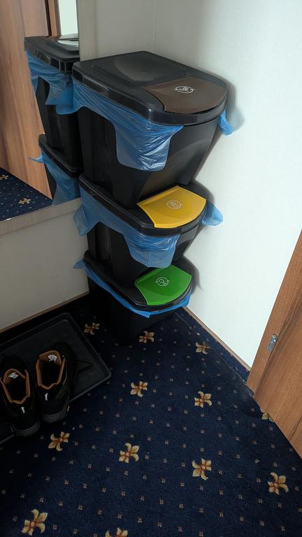 Wer sich übrigens über Mülltrennung in Deutschland lustig macht, hat bislang so etwas im Hotelzimmer (sic!) vermisst: