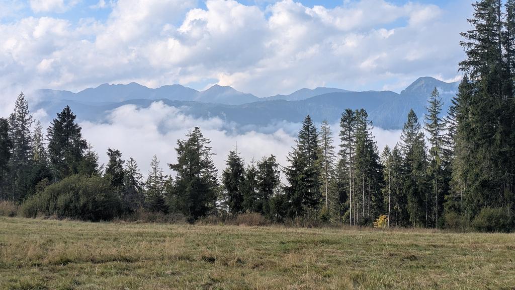 Die Wolken über der Tatra sahen schon irgendwie dramatisch aus, aber im "Vorland" war alles trocken, sonnig und entspannt. Später schickte der polnische Wetterdienst noch eine Warnung vor Starkregen, der aber nicht über mir niederging.