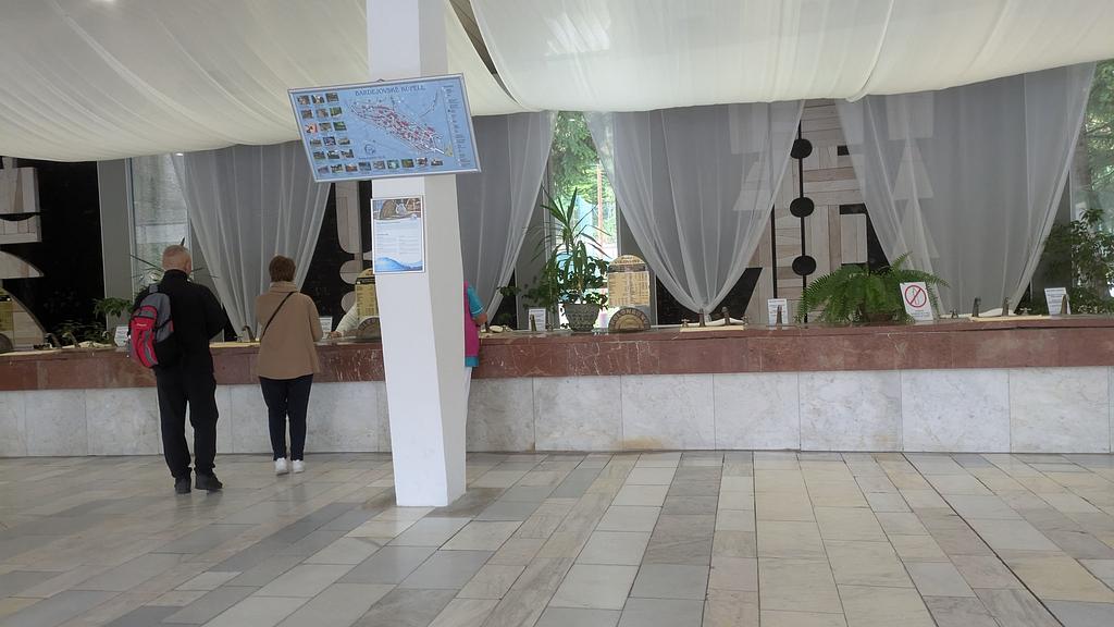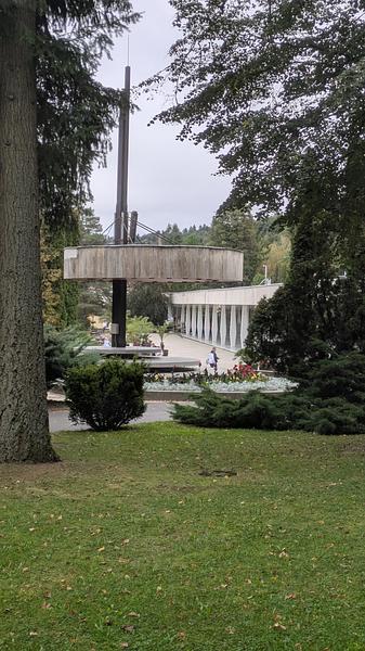 Und dann kam der Kurpark, den ich wirklich toll fand. Absolut entspannt und unaufgeregt, keine Designershops in der Nähe, nette Cafés und Restaurants und das Wichtigste: Eine Trinkhalle (ich nenne das jetzt einmal so), in der man gratis (!) sechs verschiedene Heilwasser bis zum Abwinken trinken konnte. Dazu mit Personal deren einzige Aufgaben es waren, Trinkbecher gratis (!) auszugeben und ab und zu Wasser von den Hähnen webzutupfen. Also insgesamt sehr erholsam.