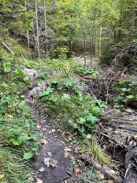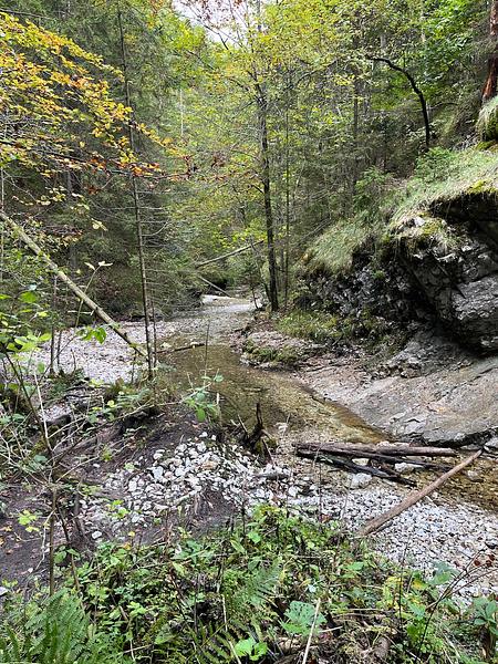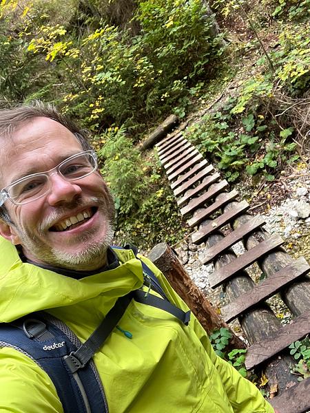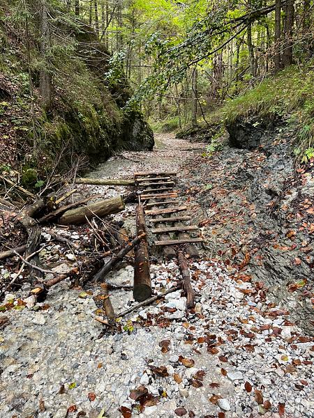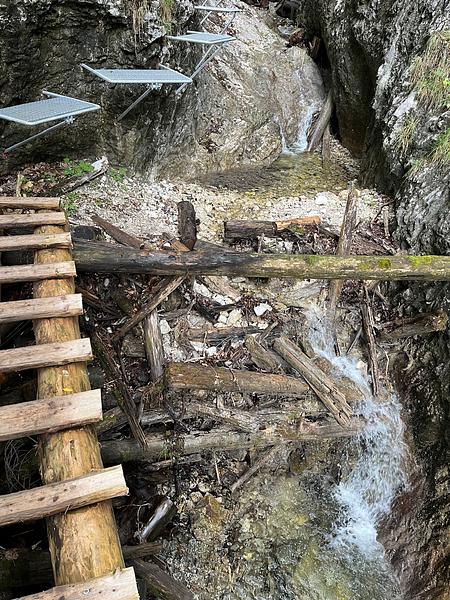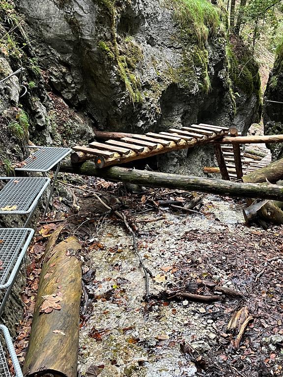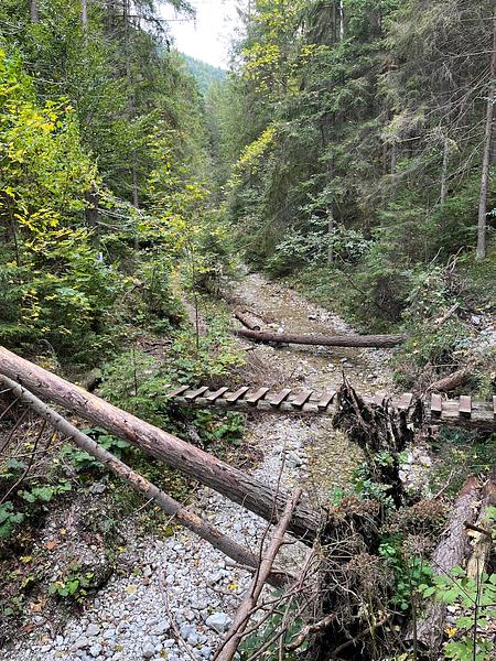 Diese Brücke hat mich tatsächlich vor die erste Herausforderung gestellt - man muste schon sehr aufmerksam balancieren (ich habe dann doch einen Wanderstock aktiviert). Die nächste Brücke dieser Art habe ich ignoriert und bin direkt durch das Waser.
