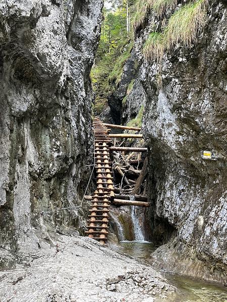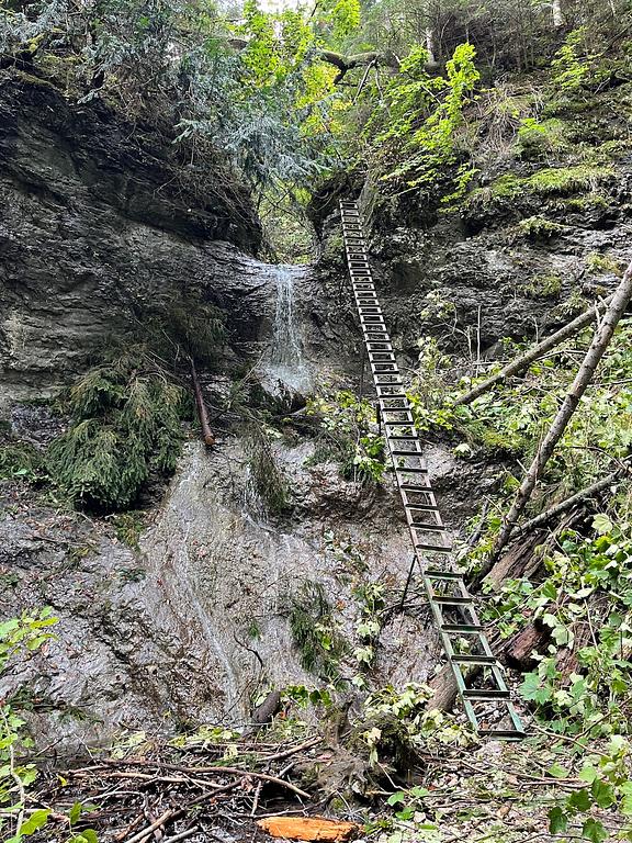 Diese Leiter hat mir übrigens im Gegensatz zu der lächerlichen Holzbrücke gar nichts ausgemacht. Wahrscheinlich, weil ich auf der Leiter immer drei oder vier Kontaktpunkte hatte, auf der Brücke nur zwei.