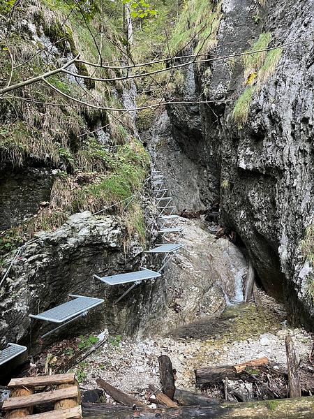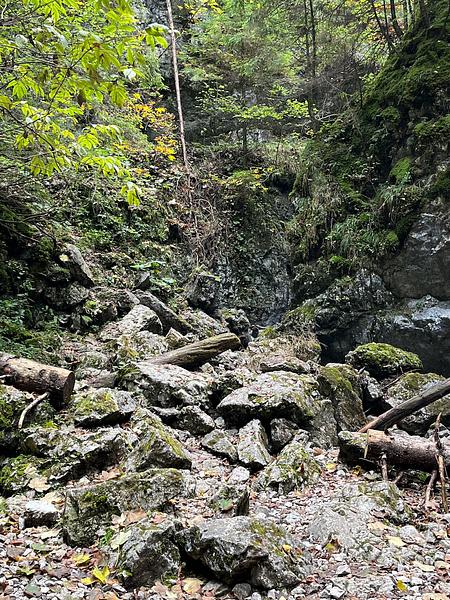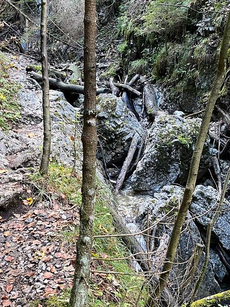 Wenn Ihr auf die Karte schaut, seht Ihr einen riesigen Haken. Das Highlight hier im "Slowakischen Paradies" sind die steilen Schluchten, und diese dürfen immer nur bergauf begangen werden. Daher musste ich erst einmal dadan vorbei und absteigen, um dann wieder nach oben zu kommen. Dazu aber gleich.