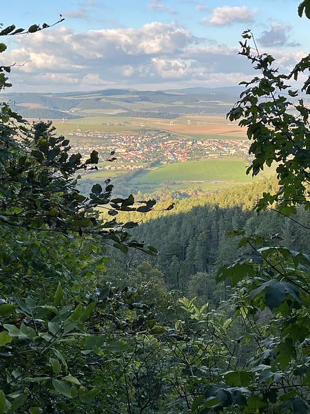 Die erste "Station" kam nach zwei Kilometern, beim Auffüllen des Proviants. Ich hatte vorher recherchiert, wo der nächste "Potraviny", also der nächste Lebensmittelladen liegt. Dieser entpuppte sich als kleiner Kaufmannsladen in einer Dorfkneipe, beides ab 7 Uhr geöffnet. Wirkte reichlich skurril, dafür gab es inter anderem sehr große Stücke von selbstgemachten Mohn-Strudel zum Mitnehmen. Der stellte sich später als sehr lecker heraus.